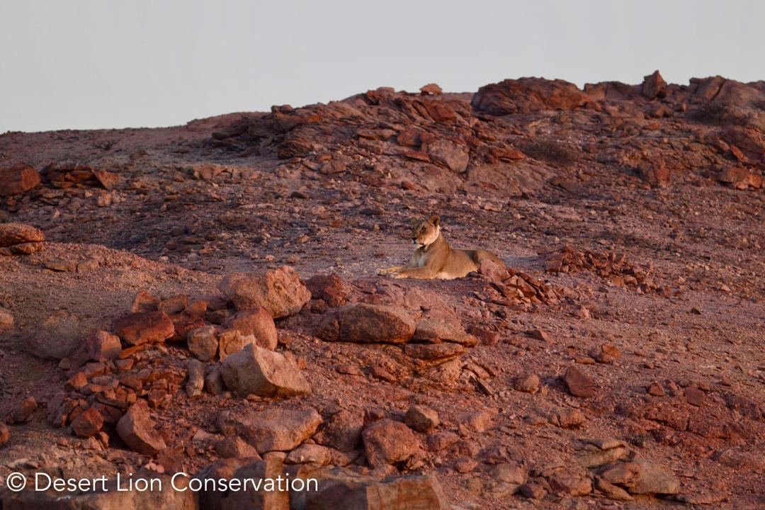 An adult male lion was tracked in the northern part of the study area where he joined a small pride of lionesses and cubs. Due to the scarcity of prey the lions were located in an area outside their normal home range. During the night the lions were observed feeding on the remains of a gemsbok that they captured in a rocky gorge.