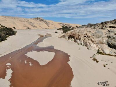 Floodwaters reach the dunes of the lower Hoaruseb river